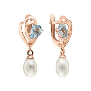Золотые серьги с бриллиантами природными, жемчугом и топазами природными