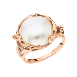 Золотое кольцо с бриллиантами природными и жемчугом природным культивированным