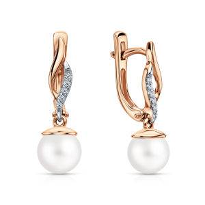 Золотые серьги с бриллиантами природными и жемчугами природными культивированными