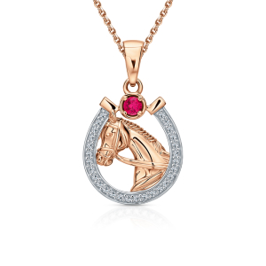 Золотая подвеска с бриллиантами природными и рубинами выращенными