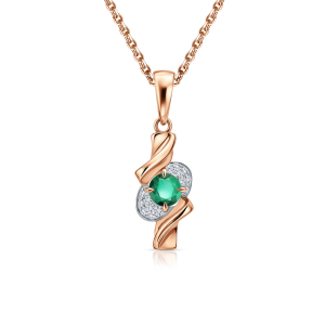 Золотая подвеска с бриллиантом природным и изумрудом природным