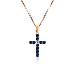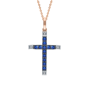 Золотая подвеска с бриллиантами природными и сапфирами природными