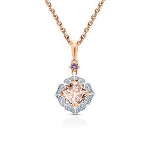 Золотая подвеска с бриллиантами природными, морганитами природными и сапфирами природными