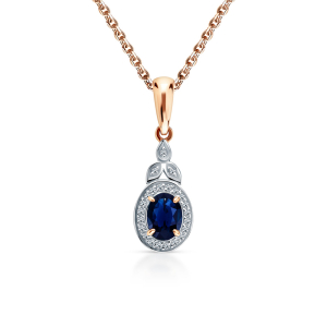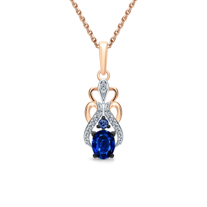 Золотая подвеска с бриллиантами природными и сапфиром природным