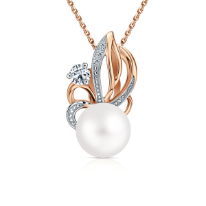 Золотая подвеска с бриллиантами природными, жемчугом и сапфирами природными