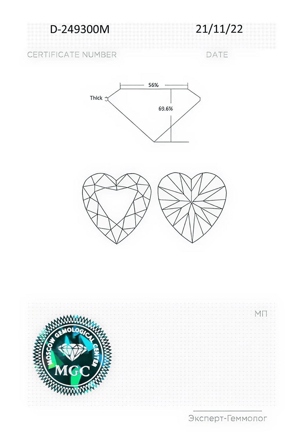 Каждому украшению с бриллиантом соответствует свой сертификат. 1 сертификат на 1 украшение (или 2 для серег)